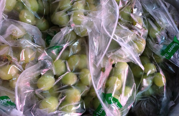 青提果形穗大;果粒有令人喜爱的绿色,皮薄,味甜,肉质脆,汁多,耐贮运。